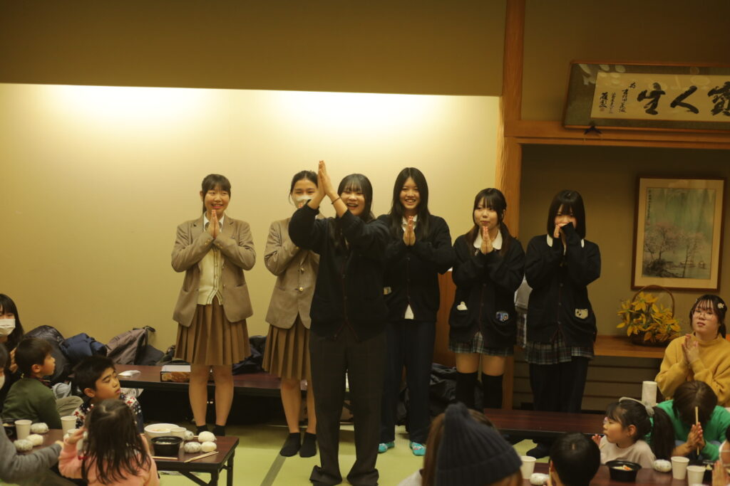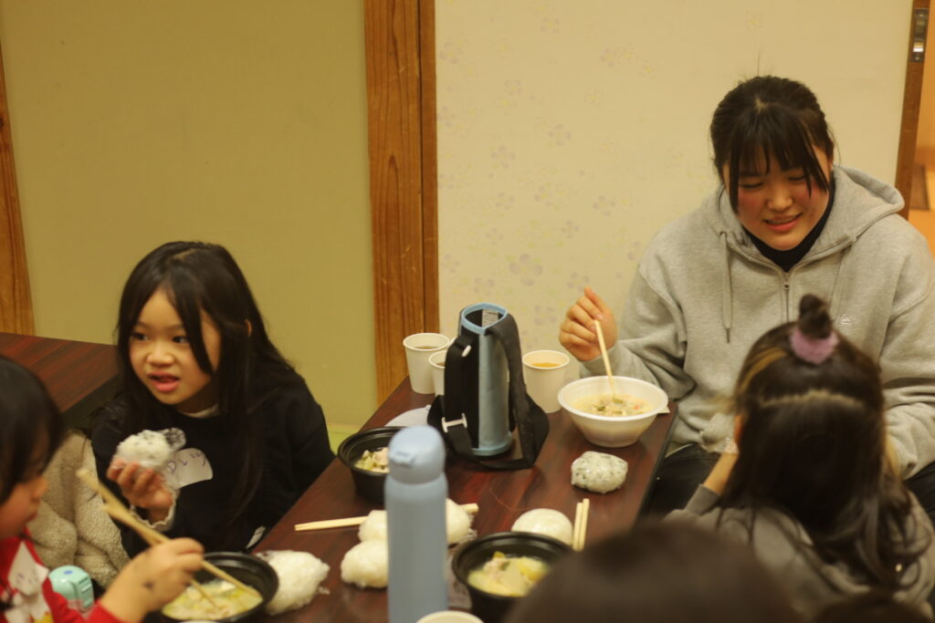 高校生の威勢のいい「いただきます!」と共に豆乳鍋とおにぎりをみんなでおいしくいただきました!!